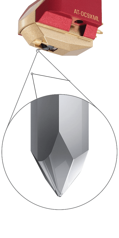 Diamant Microlinear permet une réponse plus étendue dans les hautes fréquences. Il réduit la distorsion produite par la lecture du sillon en comparaison à un diamant elliptique conventionnel, pour une restitution de détails exceptionnelle. La forme Microlinear réduit également l’abrasion dûe aux frottements sur les surfaces du diamant et du sillon.